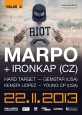 Koncert jednoho z nejvýraznějších českých rapperů. Marpo na konci září vydal již své páté studiové album RIOT, jež vzniklo na Floridě pod dohledem americké produkce. Můžete se těšit také na hosty z USA, kterými jsou Kensta Lopez, Young CP, Hard Target a Gemstar, vystoupí i český rapper IronKap.